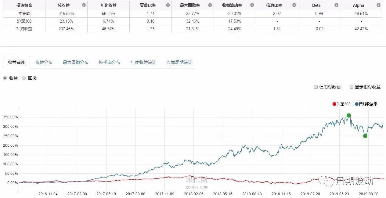 从回测结果上看,策略年化收益率56.23%,夏普比率1.74,最大回撤率23.77%。