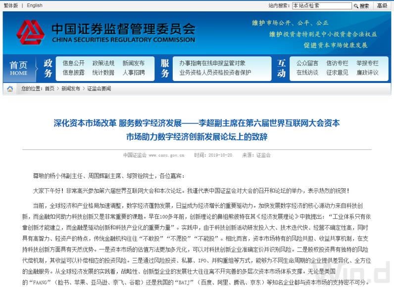 证监会副主席李超10月20日在参加第六届世界互联网大会时发表了名为《深化资本市场改革 服务数字经济发展》的讲话,其中谈及了在畅通科技创新与资本市场对接渠道方面,监管部门酝酿的改革举措。