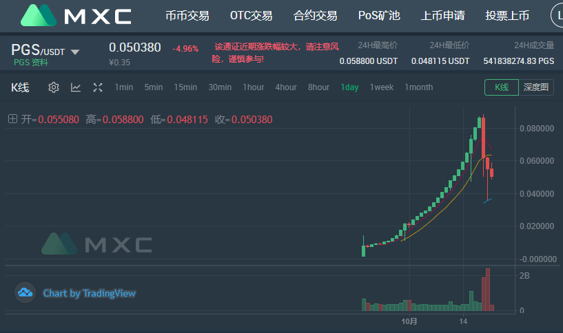 10月19日,抹茶首发项目PGS在达到了上线后的最高价后开始暴跌。