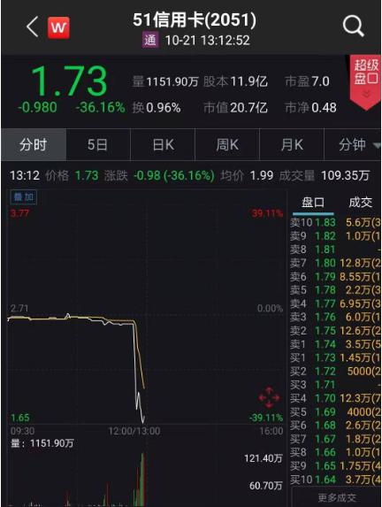 据报道,当天共一百多名警察冲进51信用卡在西溪的办公大楼,随后51信用卡的消息在午间发酵,到下午港股开盘后,股价一度暴跌40%。在此期间“51信用卡”等相关信息也一度成为网络搜索热词。