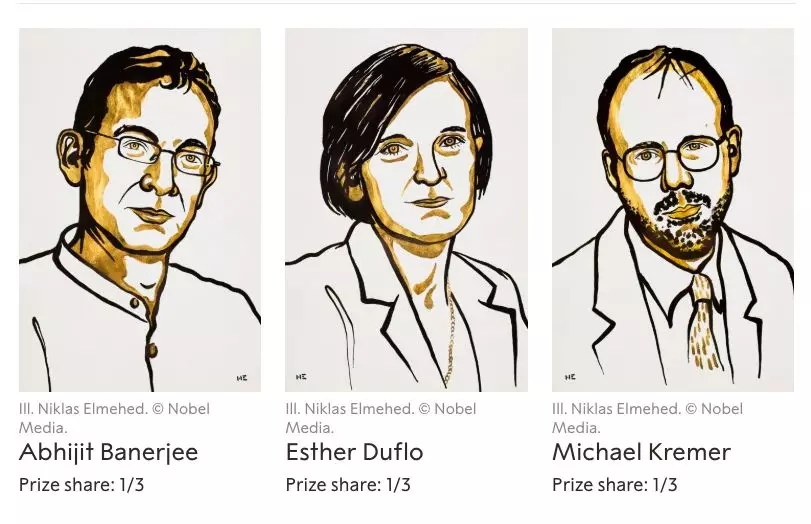 今年的诺贝尔经济学奖授予印度裔美国学者阿比吉特·班纳吉(Abhijit Banerjee)、法国出生的埃斯特·迪弗洛(Esther Duflo)、美国学者迈克尔·克雷默(Michael Kremer)三人,以表彰他们“在减轻全球贫困方面所提出的实验性方案”。