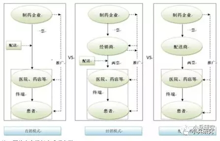 经过统计和分析而知,多数医药企业的销售模式为直销模式和/或经销模式,逐渐开始出现配送商模式,之前存在的多级代理商、非终端调拨等等业务模式正在逐步退出,上述表述是“两票制”执行以来医药企业销售模式的真实变化。其中,直接销售指的是医药企业直接将产品销往医院和药店等终端的模式,此种模式下医药企业直接向终端开具发票(一票)并收取款项;经销模式指的是医药企业将产品销售给经销商(一票),由经销商再将产品销售给医院和药店等终端(两票),此种模式下市场推广主要由经销商完成,医药企业协助经销商进行产品的宣传与推介,但总体而言,此种模式销售费用较直销模式有大幅度的降低;配送商模式是“两票制”背景下出现的新型销售模式,指的是制药企业直接将所生产的药品出售给大型医药流通企业(一票),作为配送商其再将药品配送给医院和药房的销售模式,此种模式下医药企业需要承担推广工作,而配送商只承担药品的配送工作。三种模式下药品流通路径和推广服务流程的差异归纳如下: