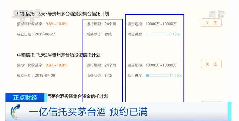 太平洋证券食品饮料首席分析师 黄付生:首先信托的主体本身就是茅台的一家比较大的经销商,以茅台酒实物为抵押物去融资,一方面是因为茅台酒的价格,终端酒的价格是持续上涨的,有持续上涨的预期;另一方面,茅台股票价格也持续上涨,这样的话,大家预期可能会有比较好的回报,所以也出现了一些杠杆性操作的产品。