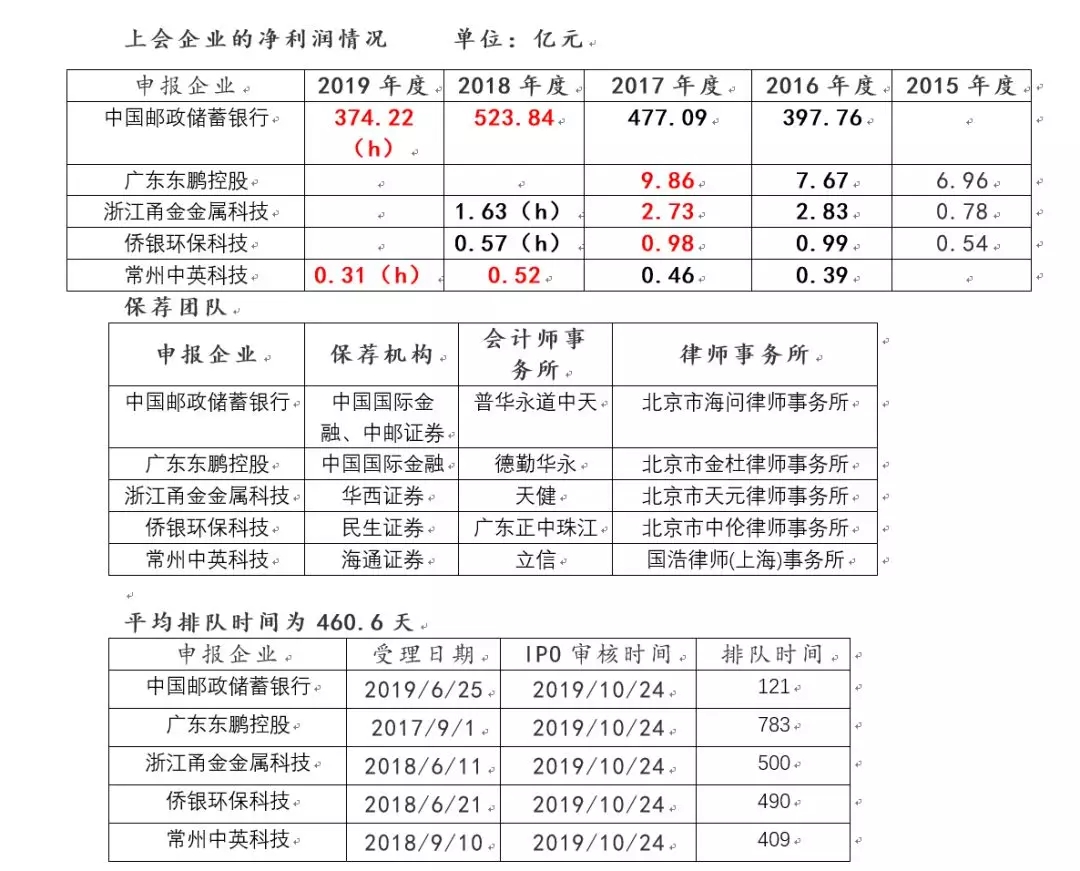 10月24日,发审委审核5家公司的IPO申请,审核结果为浙江甬金金属、广东东鹏控股、中国邮政储蓄银行、侨银环保科技等4家获得通过,常州中英科技被取消审核。