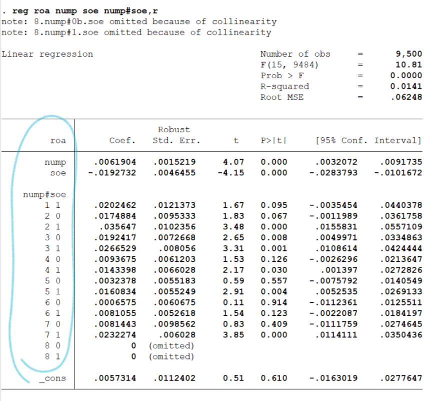 其中nump代表人数 soe是虚拟变量 1代表国企 0 代表私企