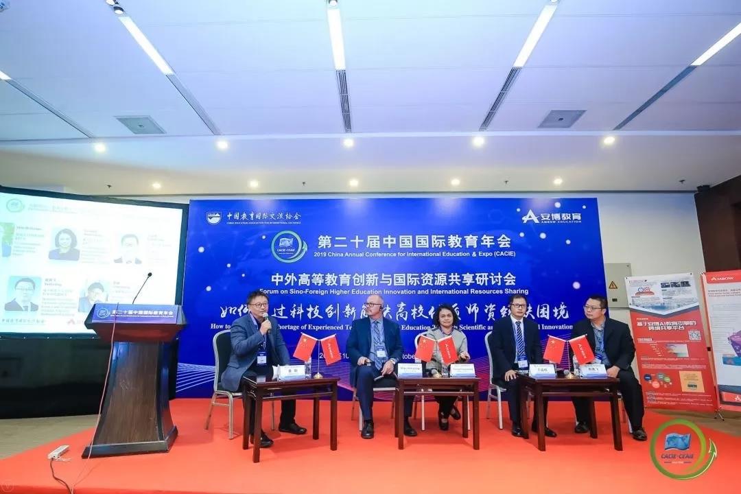 2019年10月18日下午,由安博教育集团携手全球职业与教育质量评估认证机构(Global Career Quality Assurance)承办的“中外高等教育创新与国际资源共享研讨会”于10月18日下午在北京国家会议中心举行。作为“第二十届中国国际教育年会”的重磅活动之一,研讨会以“如何通过科技创新解决高校优质师资短缺困境”为主题,包括主旨演讲和专题研讨等板块。