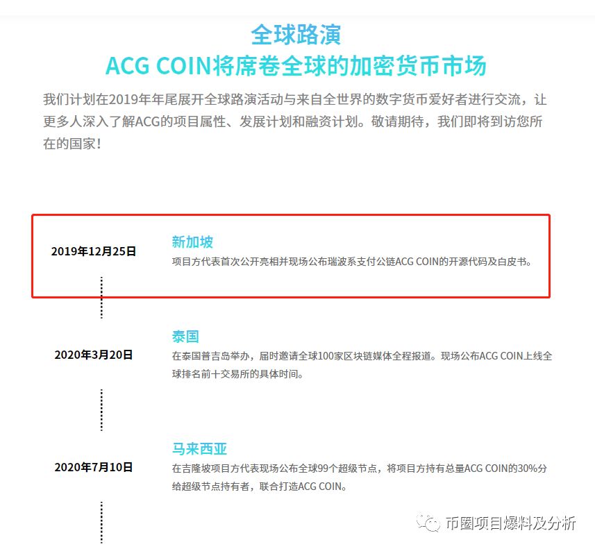 本来想查询ACG的团队,白皮书团队板块竟然是空白的。在官网的全球路演页面才得知,这个项目方在2019年12月25日才公开露面。代币合约没,团队也不知道是谁。这样的一个项目竟然可以去上架交易所,也是奇迹。