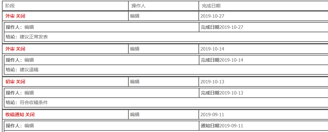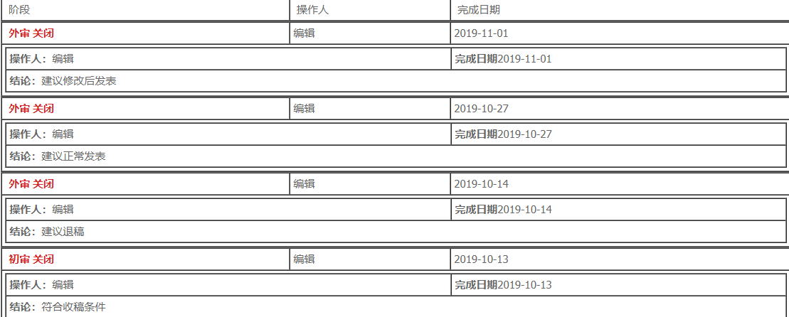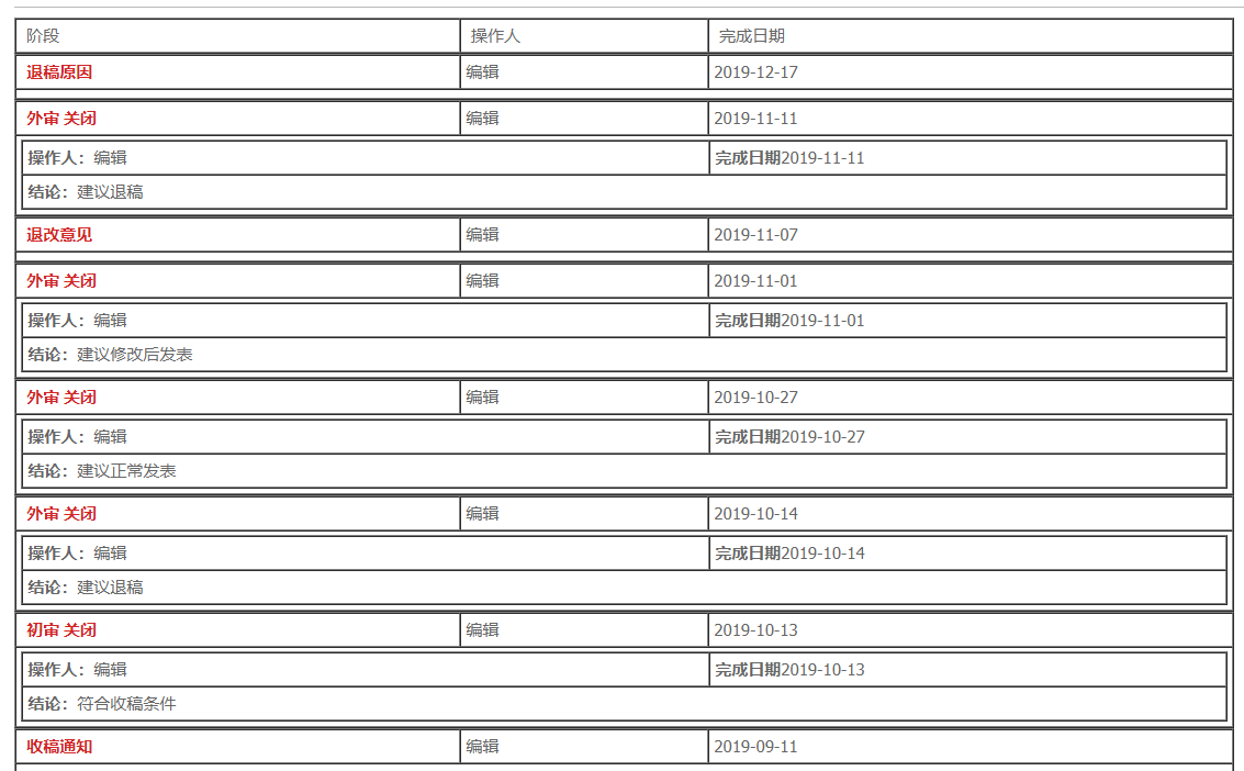 如题,于2019年9月16号投稿至安徽师范大学学报(人文社会科学版),10月14号发现外审后结论为建议退稿,然后系统变成了终审,我以为没戏了,是终审就直接退稿,然而今天再一看,又多了一个外审,结论为建议正常发表,不知道有没有人投过这个期刊,这是什么意思?
