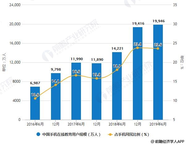 2016-2019年6月中国手机在线教育用户规模及占手机网民比例统计统计情况