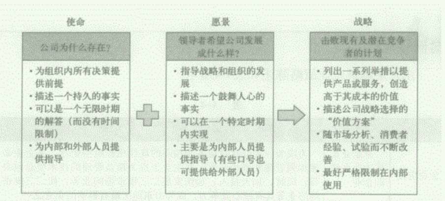 愿景、使命与战略是密不可分,相互影响的关系。企业在制订这些要素时需要系统考虑。