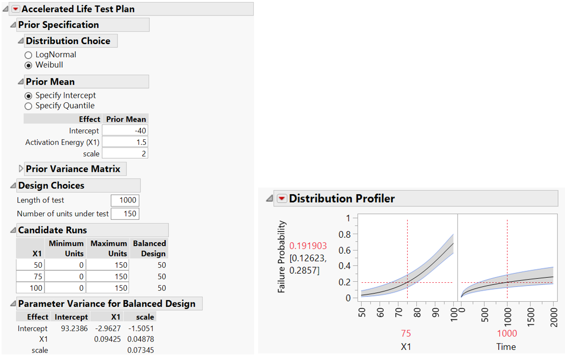 因为产品可靠性高或是因为需要短时间了解产品的测试结果,所以需要额外设计实验去了解产品的可靠性结果,在加速试验设计平台上也可以扩充现有实验次数减少估计误差。 根据先验的分布或是经验建立加速试验,以及估计失效概率:
