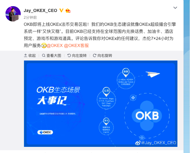 杰伦又发微博了,OK最近动作不断,利好也不断啊~
