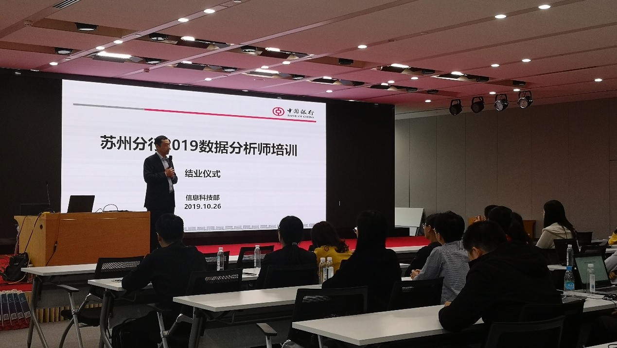 2019年8月到10月,为期两个月的数据分析师培训在中国银行苏州分行顺利开展,公司、个人、风险、运营、财务等条线共124人报名参加了此次培训。10月26日,110人参加结业测试并举行结业仪式。