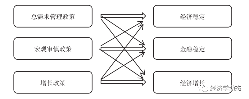 此外,无论是“金融周期说”还是“长期停滞说”,都把金融稳定作为重要的宏观经济政策目标,也都不排斥引入宏观审慎政策。我国宏观经济政策框架也正在经历这一深刻转型。在本轮经济政策扩张中,决策层明显关心金融稳定。在“稳就业、稳金融、稳外贸、稳外资、稳投资、稳预期”中,稳金融被放在第二位。在2019年5月猪肉价格上涨导致CPI走高之后,各方认识也相对一致,持“滞胀说”的只是少数,没有引发过分的担忧(汤铎铎,2019b)。这就是笔者一再强调的,我国实体经济目前仍处在低波动状态(汤铎铎、张莹,2017),我国宏观调控的主要矛盾,已经从传统的就业和通胀的折衷,转变为更广泛的经济稳定和金融稳定的折衷(汤铎铎,2019a)。如图2所示,我国宏观经济政策框架从旧三位一体(计划、财政、货币)转向新三位一体(总需求管理、宏观审慎、增长)(汤铎铎,2019c)。