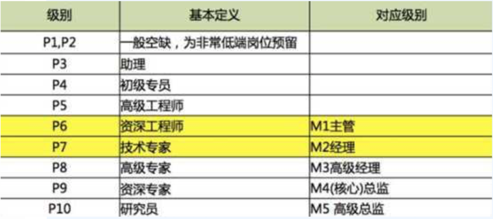 不管是数据运营分析师和数据挖掘工程师,它们在企业中都属于技术岗,当然技术岗的等级高了,也可以对等到相应的管理岗。下面就以阿里的职业级别为例,说明岗位间的打怪游戏: