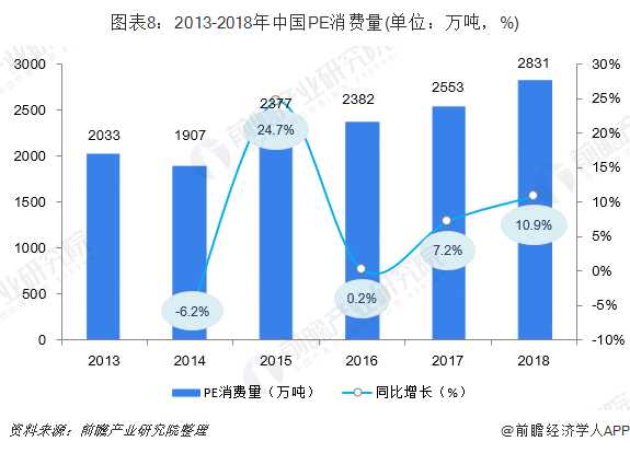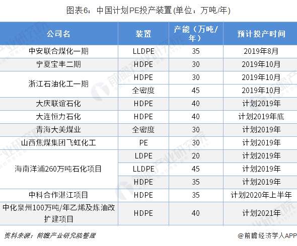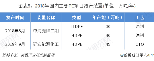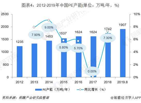 截至2018年底,中国PE产能达到1742万吨/年,其中国内PE有效产能增量为118万吨。