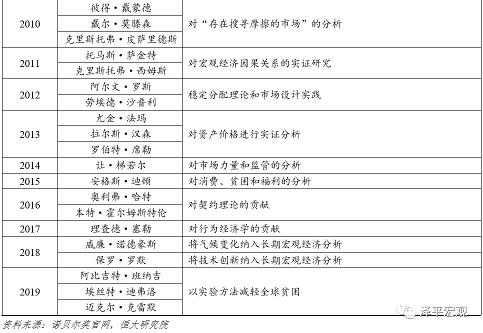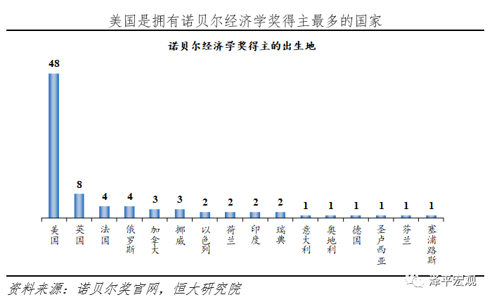 4、诺贝尔经济学奖缺乏对中国问题的应有关注,中国经济发展及学术规范进步或催生出属于中国的诺奖。四十年改革开放,中国经济社会发展取得举世瞩目的伟大成就,成功跃升为世界第二大经济体,并将在未来十年左右超过美国,跻身世界第一。但是目前中国距离诺贝尔经济学奖还十分遥远。在诺奖竞猜的热门候选人中,找不到中国人的身影,中国的现代经济学发展时间非常短暂,还没有突出的理论贡献,在经济学领域话语权很弱。展望未来,中国作为快速变革的最大发展中国家,能够提供诸多重要的研究选题,例如2018年获奖的内生增长理论对应“高质量发展”、环境经济学对应“污染防治”,2019年获奖的发展经济学对应“精准脱贫”,未来极有可能获奖的宏观-金融联系对应“防范化解重大风险”。用科学规范的研究方法,讲述中国故事,阐释普遍的经济学规律。中国的经济学家们应当秉承国际视野,立足中国实际,为现代经济学发展做出应有的贡献。随着中华民族的伟大复兴,二三十年后,中国或将迎来属于中国的诺贝尔经济学奖。