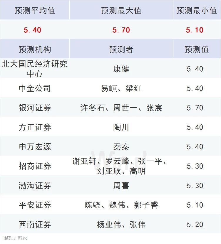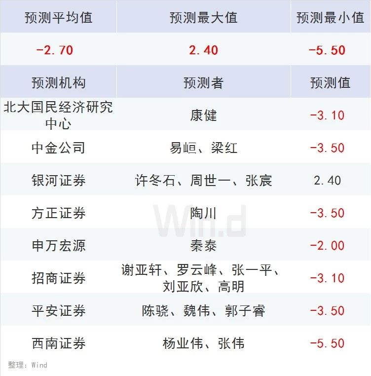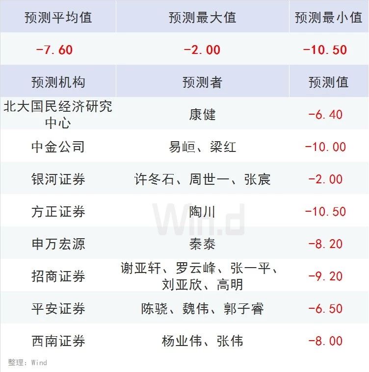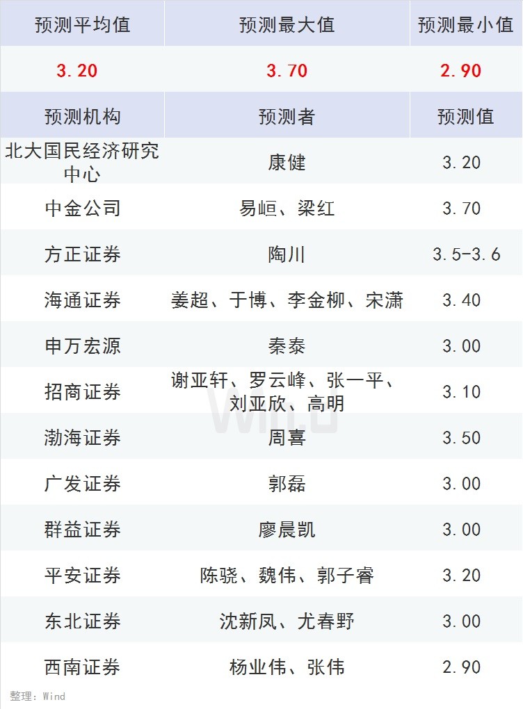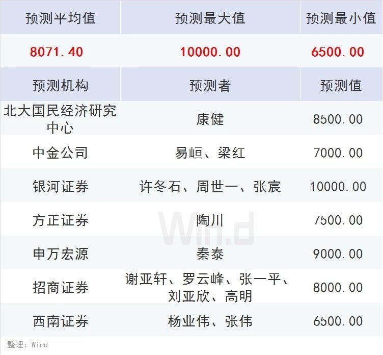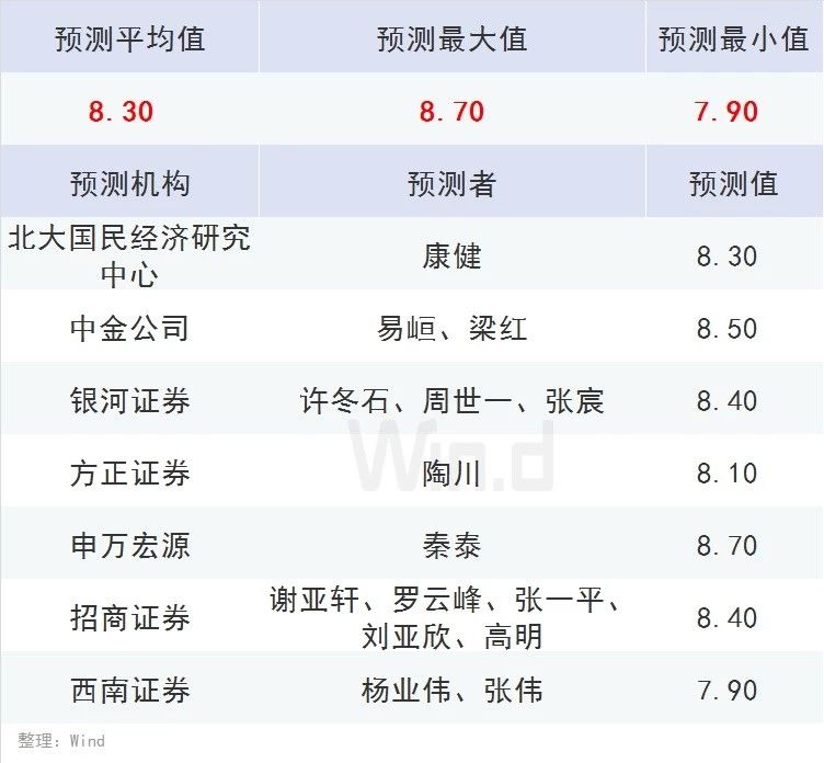 通过查询Wind金融终端经济数据库,发现主流机构预测结果如下: