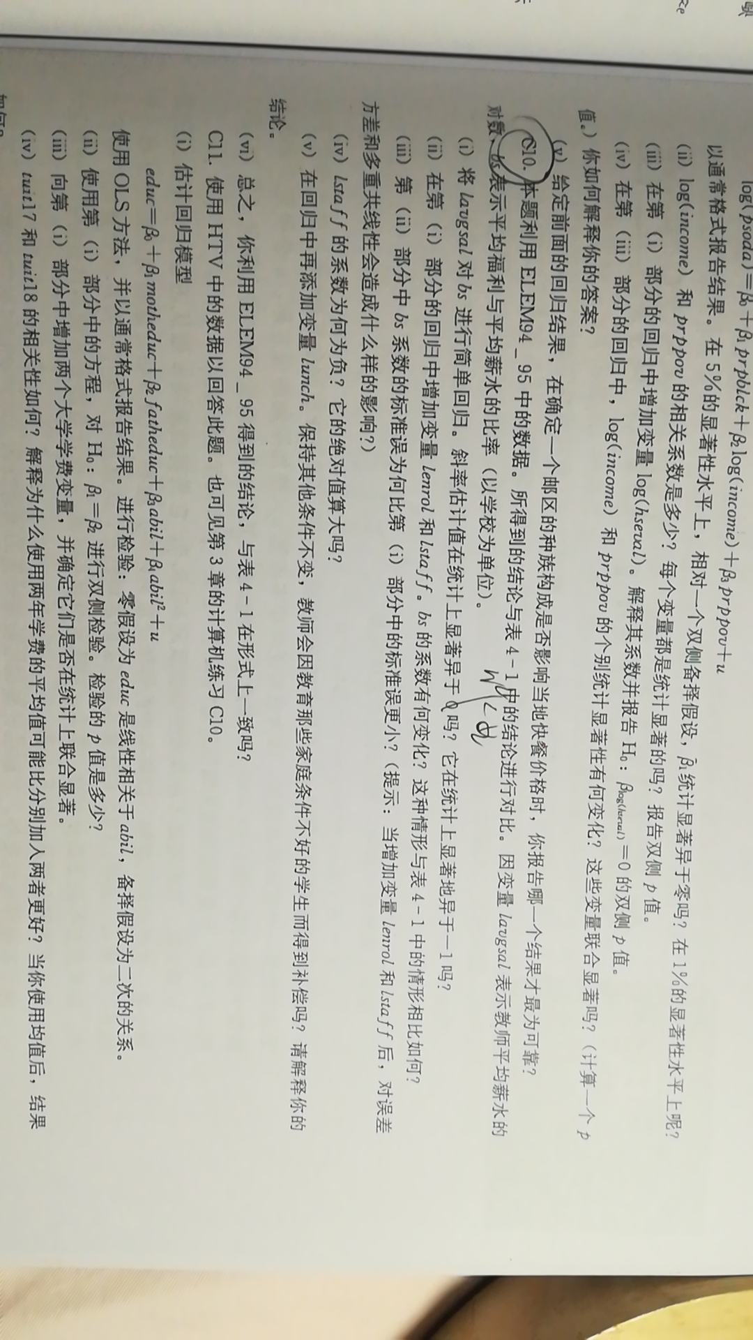 完成三道计量经济学计算机习题