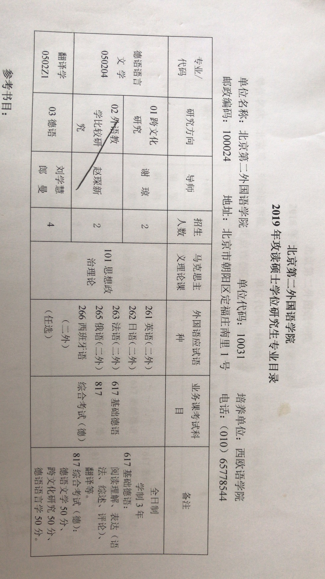 悬赏100元求助2018年和2019北京第二外国语学院德语专业考研真题。