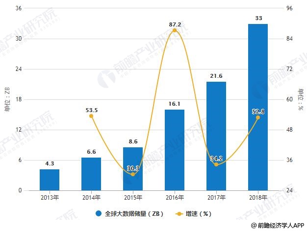 2013-2018年全球大数据储量统计及增长情况