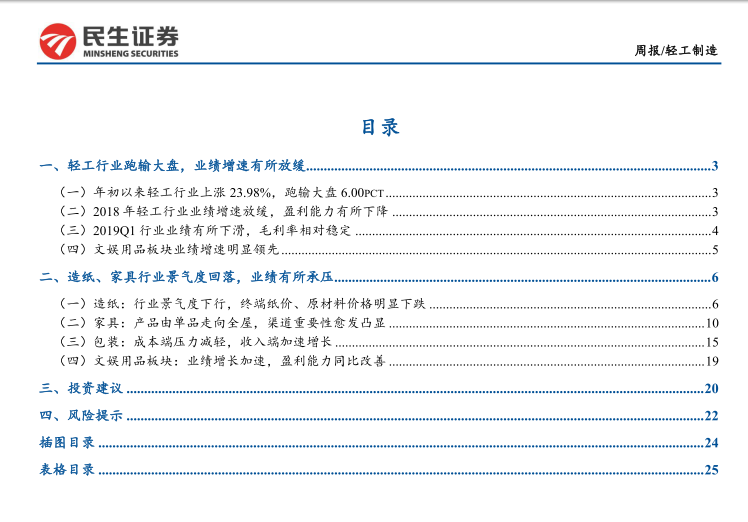轻工制造行业2018年年报及2019年一季报综述:造纸、家具景气回落,包装成本端压力减轻-20190508-民生证券-2 ...