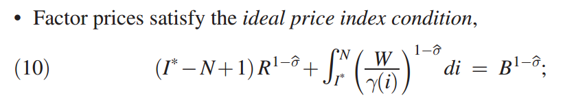 在一篇宏观经济学的论文中求静态一般均衡部分看到如下表述:Factor prices satisfy the ideal price index condition ,然后是一个数学公式。请问下这里的Factor prices satisfy the ideal price index condition 是什么意思?