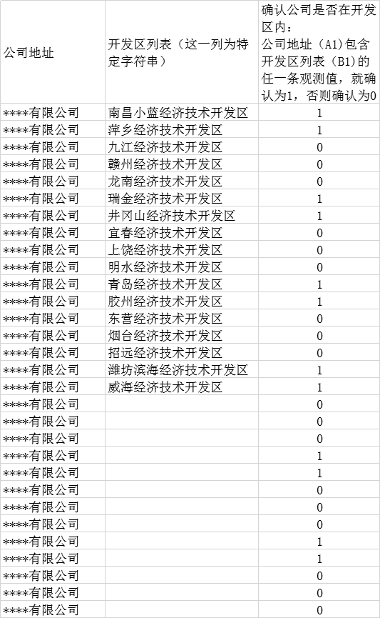 比如 gen d1 = strmatch(地址,“*开发区*”) ,