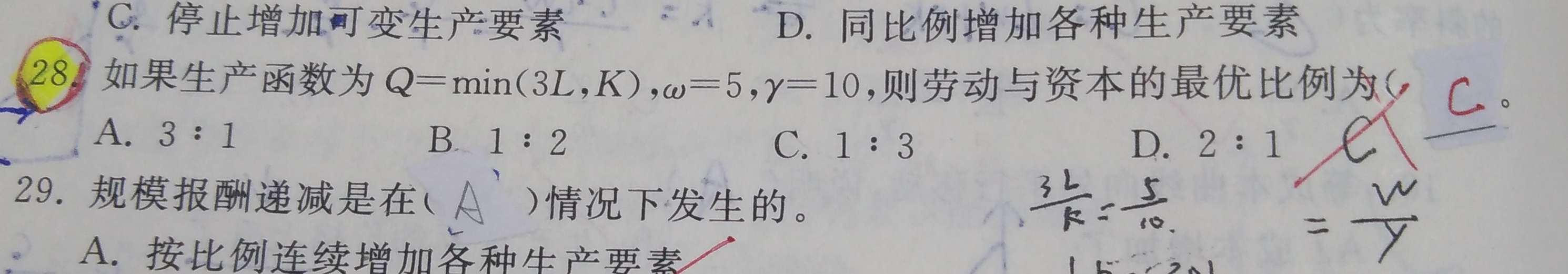 因为是固定比例生产函数,所以3L=k L/K=1:3吗? 那题目给出的劳务与资本的价格是没有关系的吗