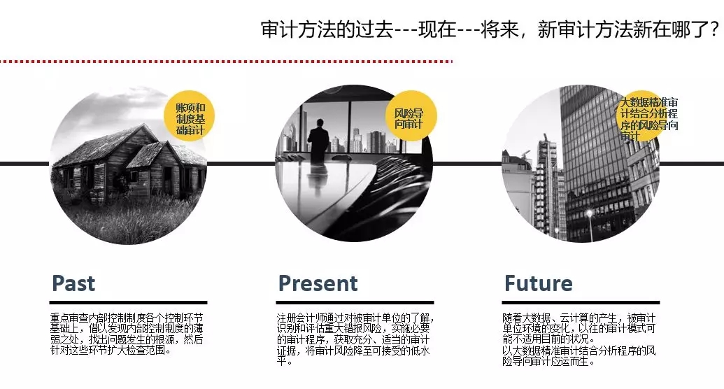 我们先来看看,审计方法的过去,现在和将来,还有新审计方法新在哪里了?