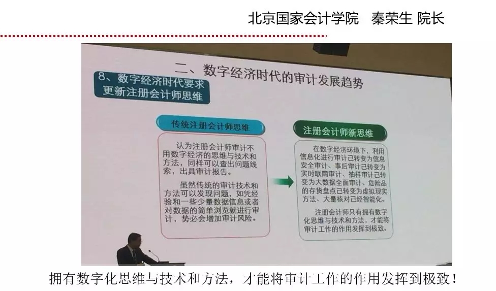 未来已来,随着 “大数据”、“云计算”、“物联网”、“人工智能”、“区块链”的概念发展及落地实施,经济业务的不断发展和日新月异的技术发展,使得我们的审计程序方法也需要不断地变化和创新。也对传统的注册会计师思维要迅速“转变”为注册会计师新思维。北京国家会计学院秦荣生院长曾说过:“要拥有数字化思维与技术和方法,才能将审计工作的作用发挥到极致”。