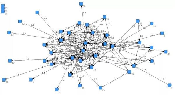 社会网络分析是定性和定量的桥梁,它对大量的图表数据进行定量分析得出定性的结论。