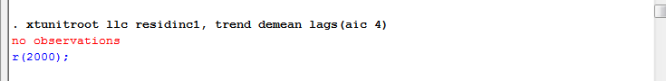 请教大神们,我在做面板单位根检验的时候,部分变量是存在单位根的,所以我就进行了一阶差分,差分之后原来不平稳的变量平稳了,但是原来平稳的变量差分后再LLC检验的时候就显示no observations了,总共17年的数据,请问有人知道是什么原因吗?急求
