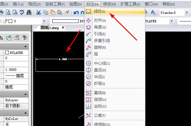 第三步:其实对于直线或斜线的标注简单的很,而这里就先讲解下直线。直接点击界面标注—线性命令,对所需的图形进行标注。当然命令中输入DIMLINEAR同样可以。