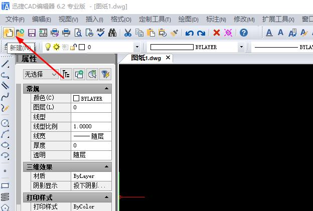 http://www.xunjiecad.com/download-major.html)图标并运行,在其CAD编辑器操作界面点击新建图标。当然选择文件—新建命令同样可以,从新建立图纸。