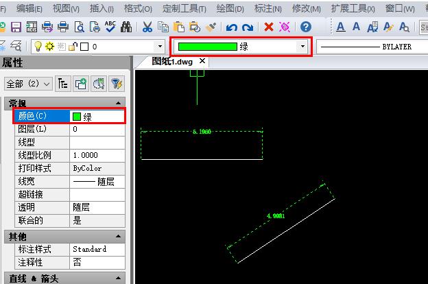 第五步:一般所进行标注的都会更改器颜色,这样更显著直观的查看图纸上内容。点击界面左侧窗口内颜色命令或界面上颜色图标对所标注更改颜色。