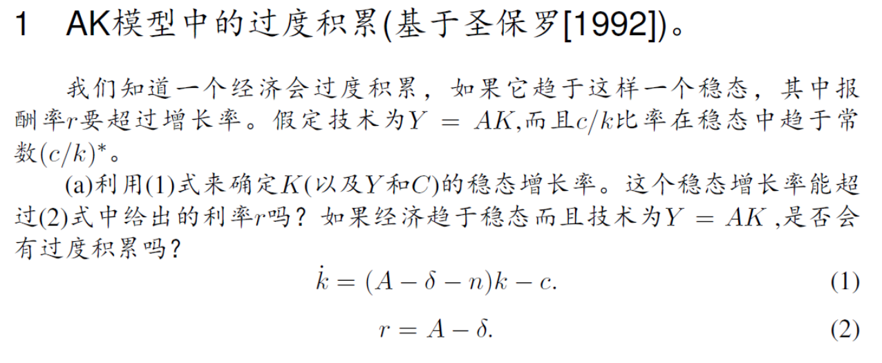 内生增长模型:AK模型中的过度积累问题(基于圣保罗(1992)),如下图。请问这道题该如何解答?