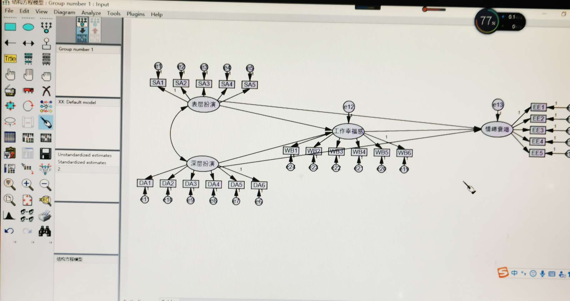 Amos在导入数据时计算估计值的图标变灰了,不能点