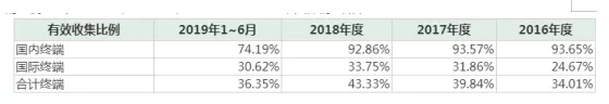注:受限于报告期发行人国际终端分布众多,涉及100多个国际及地区,以及欧盟、澳大利亚等国际及地区数据保护法的限制,国际终端有效收集比例相对有限。