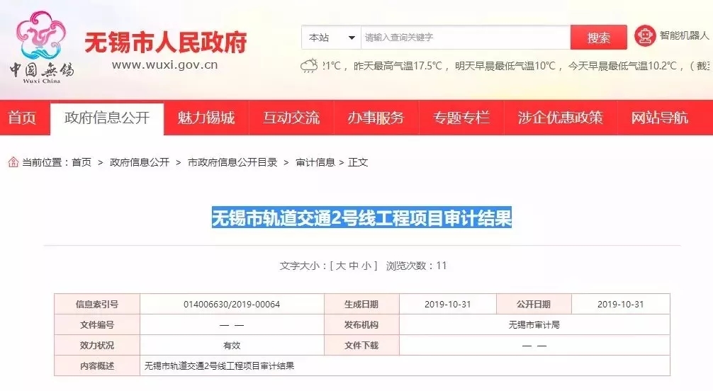 2012年6月起,无锡市审计局对无锡地铁集团有限公司实施的无锡市轨道交通2号线工程进行了跟踪及竣工决算审计。现将审计结果公告如下: