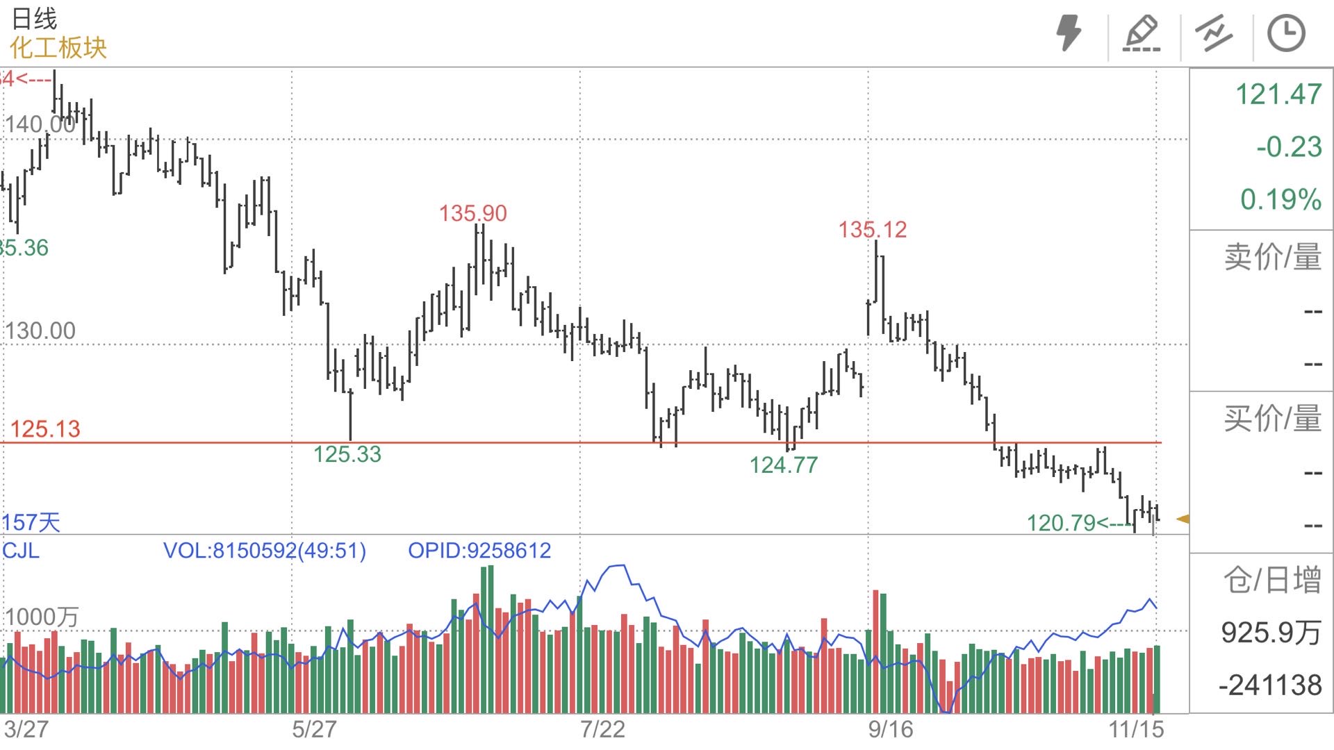 化工板块,燃油受支撑影响非常羸弱,抄底风险很大;