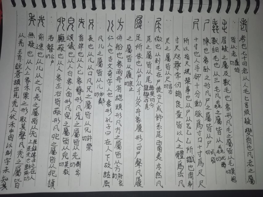 【学习笔记】补昨日,,昨天主要在看书,只有说文解字的手写