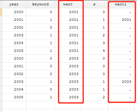 diannaoasd 发表于 2019-11-16 12:19 destring keyword, replace bys ID:gen s = sum(keyword) gen wanti=year if keyword == 1 & keyword[_n- ...