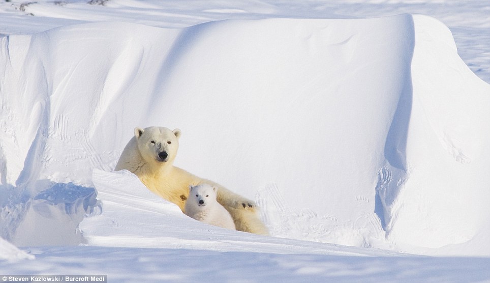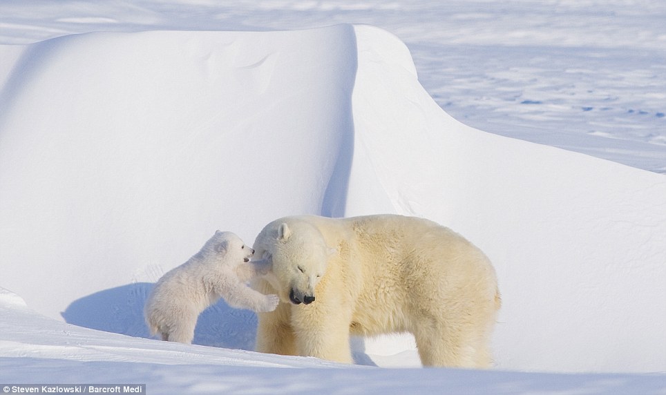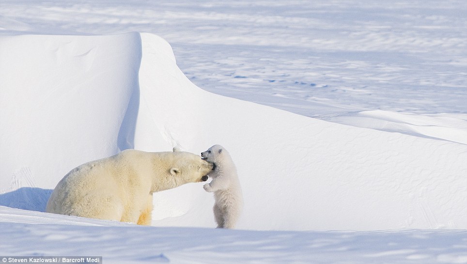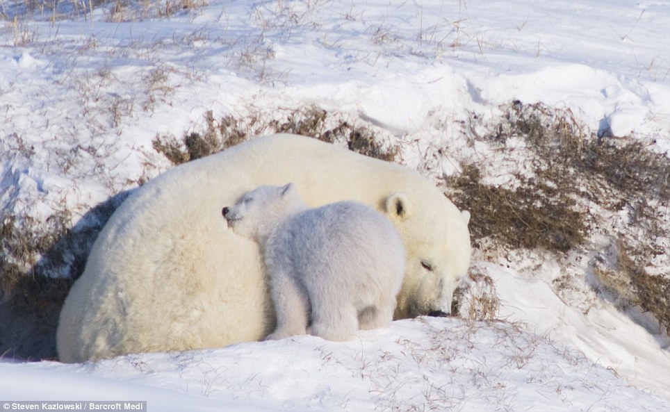 01:I love you, Mum: The cub snuggles against its mother as the pair appear to take a little nap in the powdery Arctic snow