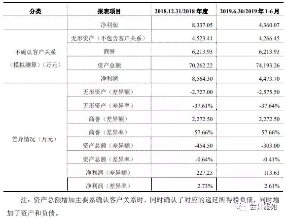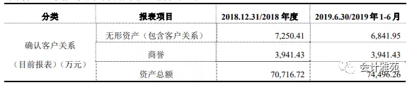 同时,如果不确认客户关系,将会导致需要确认的商誉增加,根据2018年 及 2019年6月底商誉相关资产的减值测试结果显示,相关资产组可收回金额均 大幅高于相关商誉资产组的账面价值,因此包括无形资产在内的商誉资产组在 2018 年及 2019 年 6 月底不会出现减值情况。
