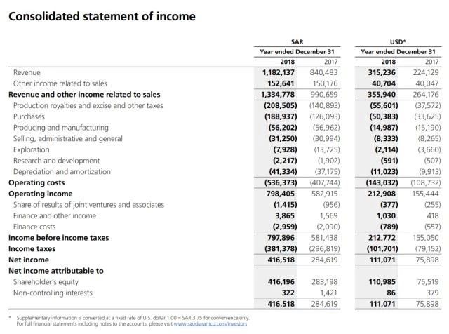 在2019年7月《财富》杂志公布的世界500强排行榜中,沙特阿美首次上榜,并一举成为全球最赚钱公司。2018财年,公司净利润高达1110.71亿美元,比全球五大石油巨头(埃克森美孚、荷兰皇家壳牌、英国石油BP、雪佛龙、道达尔)的利润之和还要高出36%,营收规模高达3560亿美元。