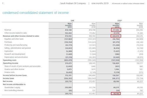 (图片来源:沙特阿美2019年三季报)