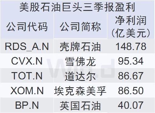 2019年前三季度,壳牌石油、雪佛龙、道达尔、埃克森美孚、英国石油五家公司的盈利情况如下: