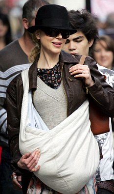 当年妮可基嫚就是靠着这款背带,将宝贝女儿桑黛.萝丝搂抱在怀里(见图,摘自英国每日邮报网站),脸上洋溢着幸福的模样,连带拉抬了俏妈咪背带的人气。据称这款背带有助于增进父母与婴儿的互动与交流,又可让父母空出双手,带着新生儿趴趴走,所以成了许多消费者的新宠。