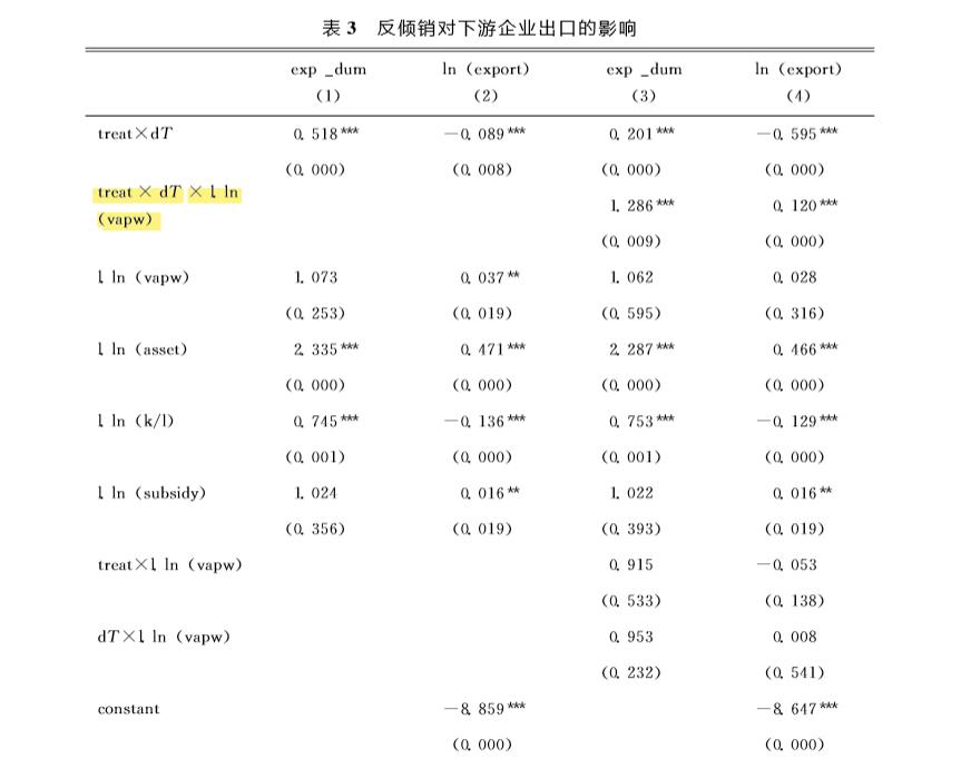 我想知道如何在DID模型中再加入一个机制变量(上表中是ln(vapw))分析实验组和对照组中ln(vapw)变量的影响区别,但是我不知道如果在stata命令中如何对这个结果进行编码,部分数据如下,变量a=dumpinter*casetime*maxtfp